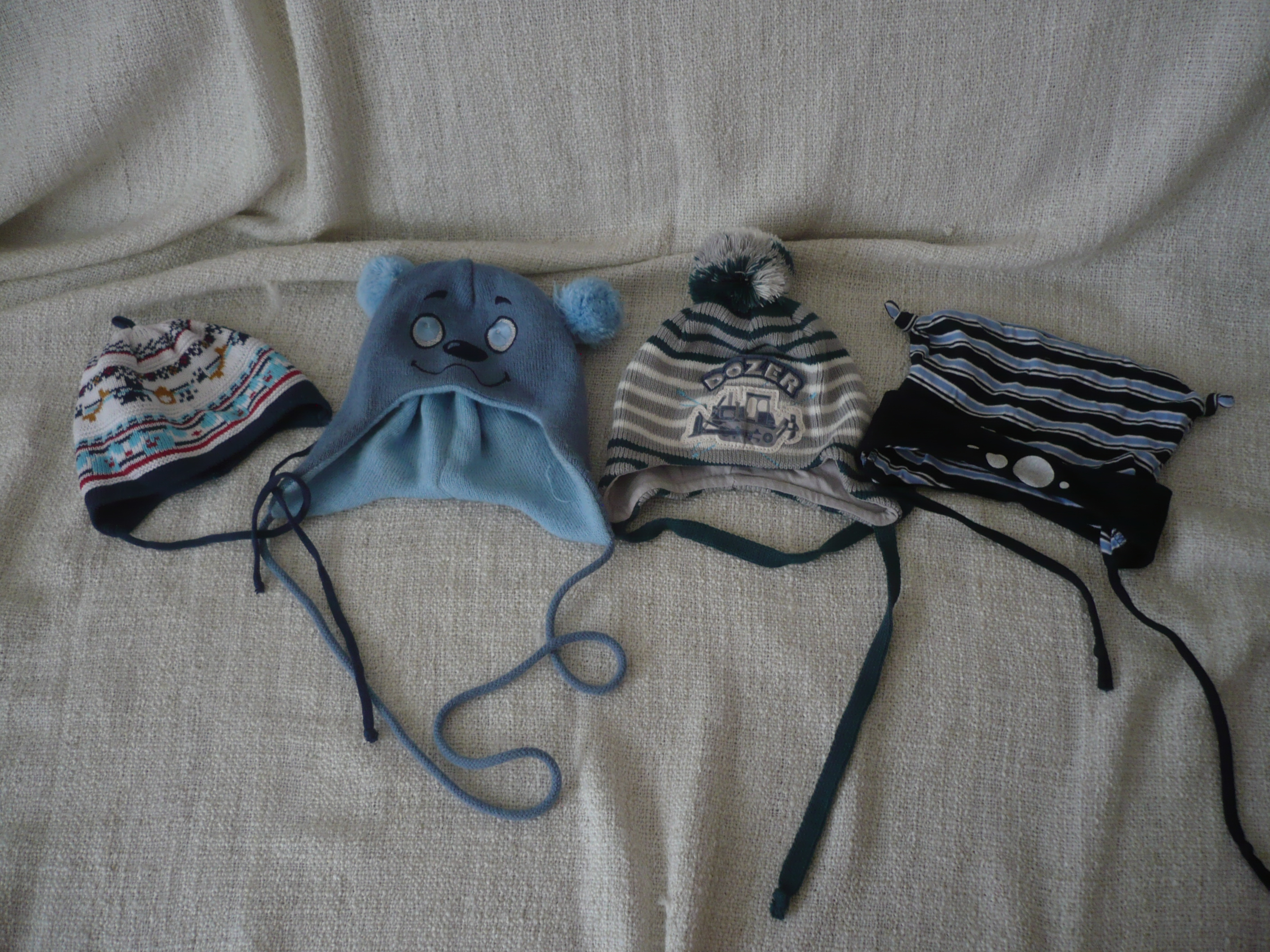 Первая - вязаная хлопковая, размер не знаю, носили в 3-4месяца, Цена 100р.